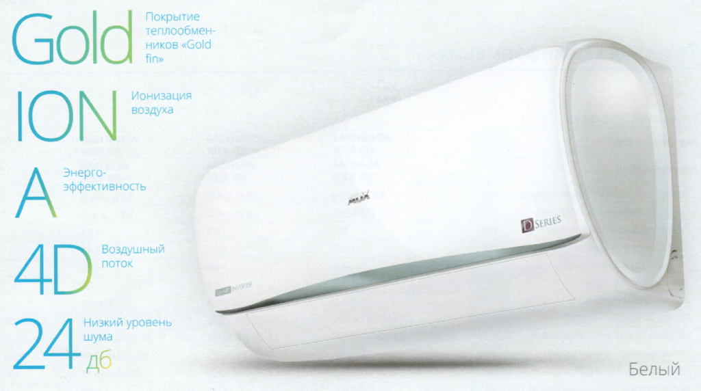 Технические характеристики сплит-систем AUX D Smart Inverter